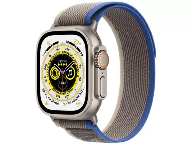 Apple Watch Ultra GPS + Cellular 49mm Caixa de titânio Pulseira loop Trail azul/cinza P/M |