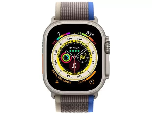 “• Recursos e sensores especializados e três pulseiras novas criadas para exploração, aventura e esportes de resistência • Caixa de titânio aeroespacial de 49 mm para um equilíbrio ideal entre peso, força e resistência à corrosão • A maior e mais brilhante tela para Apple Watch para facilitar a leitura sob todas as condições • Até 36 horas de bateria com uso normal e opção de usar os ajustes de pouca energia para aumentar a duração* • Sistema de GPS de precisão e dupla frequência, que oferece a localização exata para calcular distância, ritmo e mapas de percursos • Resistência à água (100 metros)** • Maior tolerância às variações de temperatura durante o uso para resistir aos ambientes mais diversos • Botão de Ação configurável para definir um Ponto Intermediário, usar o recurso Retraçar Bússola, marcar segmentos em um treino, ligar a lanterna e muito mais • Recursos avançados de segurança, incluindo Sirene, Retraçar, Detecção de Queda, SOS de Emergência*** e Detecção de Acidente • App Exercício aprimorado com novas métricas e visualizações, além de maneiras avançadas de treinar • App Bússola totalmente redesenhado com os recursos Pontos Intermediários e Retraçar • App Profundidade para mergulho até 40 metros**** • Rede celular incluída para manter a conexão com as informações e pessoas que mais importam***** • Sensores avançados de saúde permitem fazer um ECG e medir a frequência cardíaca******, acompanhar as variações de temperatura******* para informações detalhadas sobre seu ciclo menstrual******** e medir o nível de oxigênio no sangue********* • Acompanha sua atividade diária e mostra suas tendências no app Fitness no iPhone • Sincronização e reprodução por streaming das suas músicas e podcasts favoritos • Pagamentos na hora e com segurança direto do pulso com o Apple Pay********** • watchOS 9, que vem com o app Exercício aprimorado, o novo app Medicamentos, estágios do sono e informações detalhadas sobre a saúde do coração • O Apple Watch vem com três meses grátis de Apple Fitness+, que inclui 11 tipos de exercício, como HIIT, yoga e até meditação*********** Avisos legais * O Apple Watch Ultra requer iPhone 8 ou posterior com iOS 16 ou posterior. ** O Apple Watch Ultra tem classificação de 100 metros de resistência à água segundo a norma ISO 22810. Pode ser usado para mergulho recreativo até 40 metros (com um app de terceiro compatível da App Store) e esportes aquáticos de alta velocidade. O Apple Watch Ultra não deve ser usado para mergulhos de mais de 40 metros de profundidade. A resistência à água não é uma condição permanente e pode diminuir com o tempo. Consulte support.apple.com/pt-br/HT205000 para obter mais informações. *** O SOS de Emergência requer uma conexão de rede celular ou chamadas Wi-Fi com conexão de internet do seu Apple Watch ou do seu iPhone, que precisa estar por perto. **** É preciso ter uma assinatura do Oceanic+. Disponível na App Store. Siga sempre os protocolos de mergulho, ***** O serviço de rede celular requer um plano de dados sem fio. Entre em contato com sua operadora para obter mais informações. A conexão pode variar de acordo com a disponibilidade da rede. Consulte as operadoras compatíveis e os requisitos em apple.com/br/watch/cellular. Acesse support.apple.com/pt-br/HT207578 para ver outras instruções de configuração. ****** O app ECG e a notificação de ritmo cardíaco irregular exigem as versões mais recentes do watchOS e do iOS e não são recomendados para menores de 22 anos de idade. O app ECG está disponível no Apple Watch Series 4 ou posterior (exceto no Apple Watch SE). A notificação de ritmo cardíaco irregular não foi desenvolvida para pessoas que já foram diagnosticadas com fibrilação atrial. ******* O recurso Sensor de Temperatura não é um equipamento médico e não deve ser usado para diagnóstico, tratamento ou outra finalidade médica. ******** O app Acompanhamento de Ciclo não deve ser usado para diagnóstico, tratamento ou outra finalidade médica, incluindo como método contraceptivo ou para planejamento de gravidez. ********* O app Oxigênio no Sangue não se destina ao uso médico, incluindo autodiagnóstico ou consulta médica, e foi desenvolvido apenas para fins de bem-estar e boa forma ********** O Apple Pay não está disponível em todos os países. Para ver a lista dos países e regiões com Apple Pay, consulte support.apple.com/pt-br/HT207957. *********** É preciso ter uma assinatura do Apple Fitness+.” |