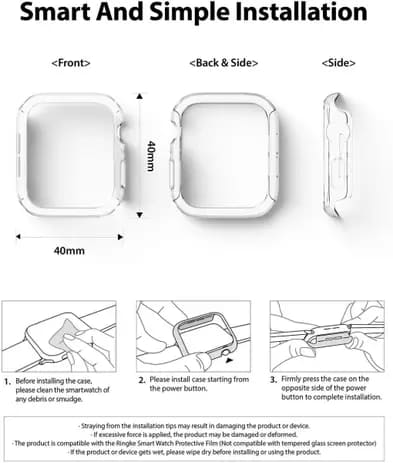 Capa fina e leve projetada para caber perfeitamente no Apple Watch 40mm