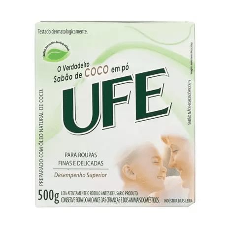 | informações | A Ufe é uma marca especialista em produtos de coco, é indicada na limpeza de roupas delicadas e de bebê pois remove as sujeiras mais dificeis sem daniicar as fibras das roupas. Sua exclusiva formulação de alta qualidade preserva as cores e deixa os tecidos com um suave perfume natural de coco. Conhceça também nas versoões pó, pasta e líquido.O Sabão de Coco Ufe 500g é especialmente indicado para limpeza de roupas delicadas, retirando a sujeira mais pesada sem agredir as roupas conservando-as sempre novas. | ||||